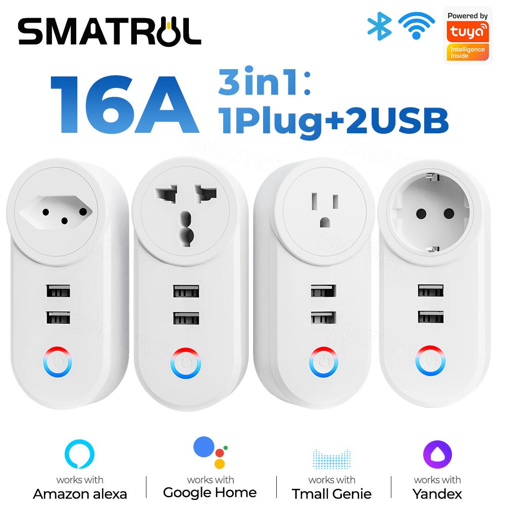 Tuya Wi-Fi умная USB-розетка ЕС США Бразилия вилка 16А адаптер для зарядки голосовое приложение Smart Life электрическое для Google Home Alexa
