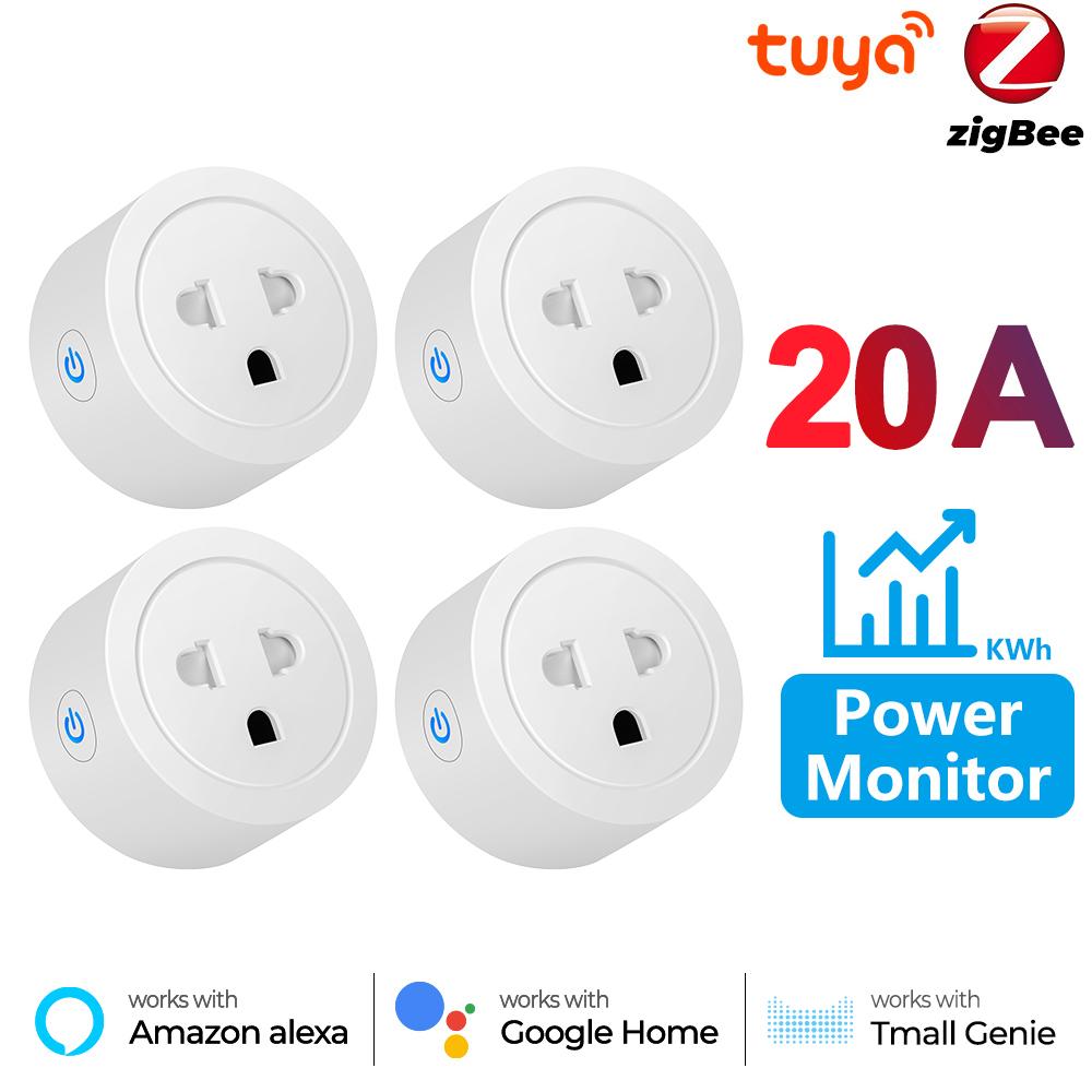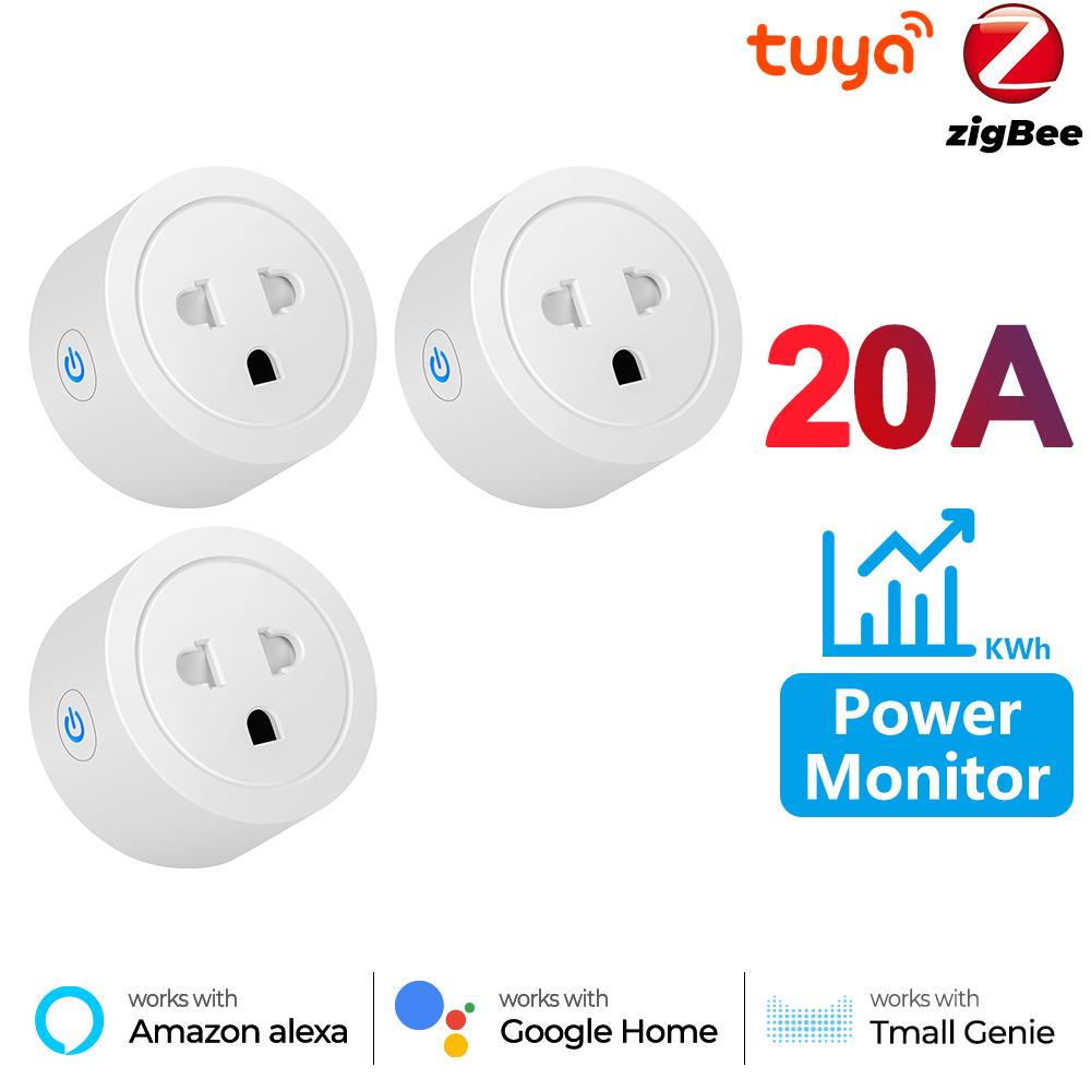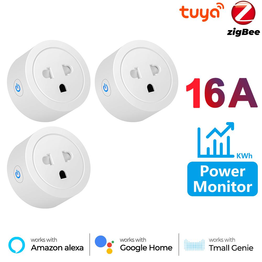 20a/16a Монитор мощности Tuya Zigbee Us EU Смарт-розетка Адаптер Беспроводной голосовой таймер Приложение для Google Home Alexa Tmall Genie