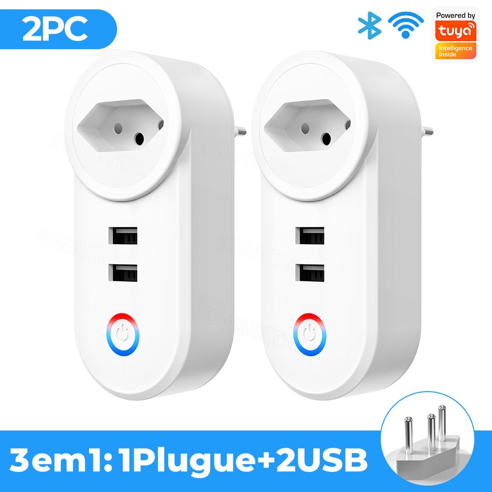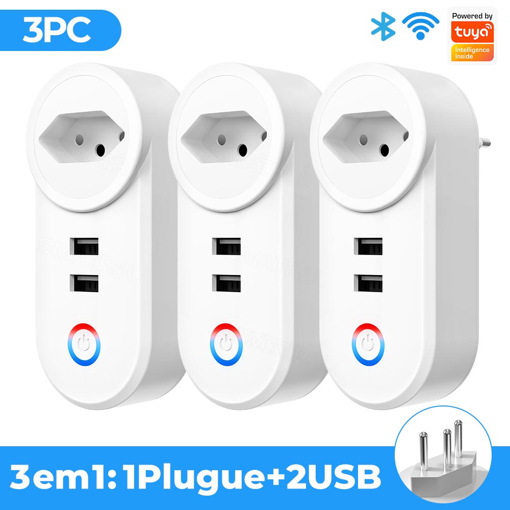 Tuya Wi-Fi Smart USB-розетка, бразильская вилка, адаптер для розетки 16a, зарядное устройство для голосового синхронизации, приложение Smart Life, электрическое для Google Home Alexa