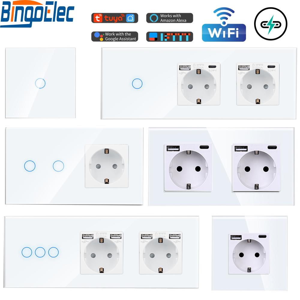 Смарт-сенсорные выключатели Tuya плюс USB-разъемы, вилка типа C, стандарт ЕС, Smart Life, Google Home, управление приложением Alexa — купить товар онлайн с бесплатной доставкой по всему миру!