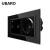 Смарт-сенсорный переключатель европейского стандарта с USB-розеткой, панель из закаленного хрустального стекла, вилка выключателя 220 В, работает с Smart Life Tuya