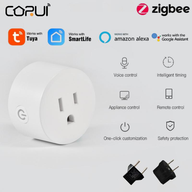 Corui Tuya Us Zigbee 15a Smart Sokcet Розетка Адаптер Приложение Smart Life Беспроводной пульт дистанционного управления Aleax Функция таймера Google Home