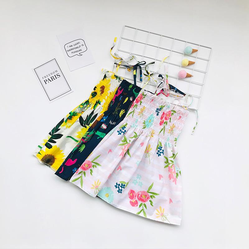 Новое летнее пляжное платье на слинге с принтом для маленьких девочек, хлопковые тонкие детские платья с цветочным принтом, одежда