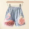 Джинсовые шорты для девочек, летние детские новые корейские милые кружевные шорты с лебедем для девочек, короткие джинсы с эластичной резинкой на талии, детская одежда