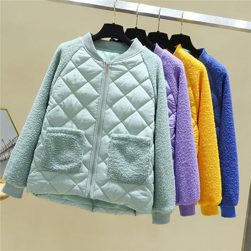 2021 осенне-зимняя модная повседневная хлопковая свободная женская короткая теплая стеганая куртка из шерсти ягненка
