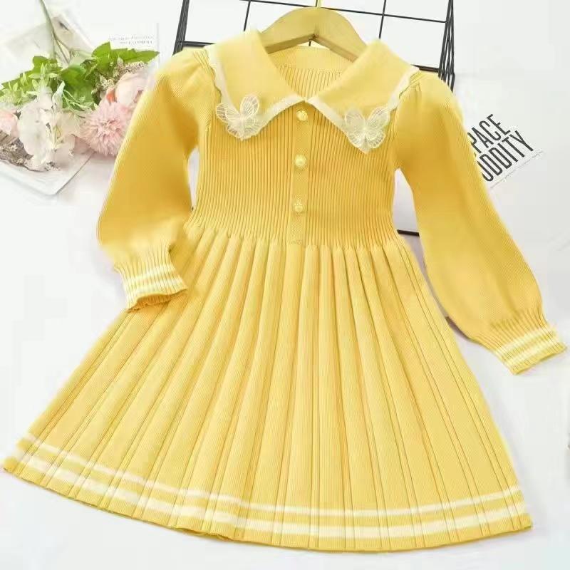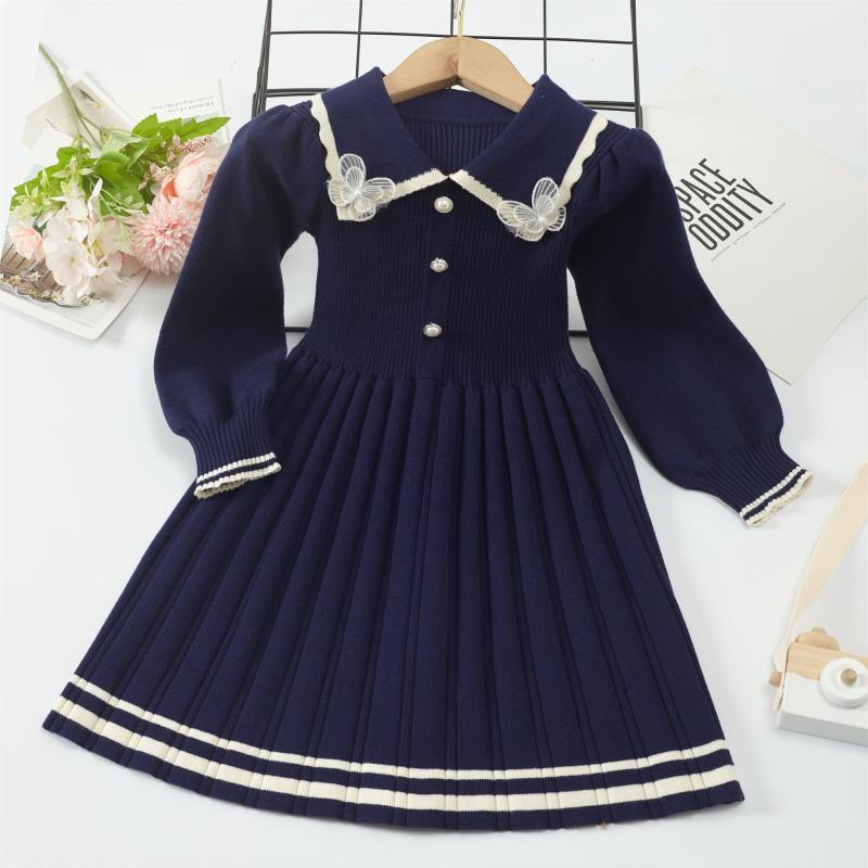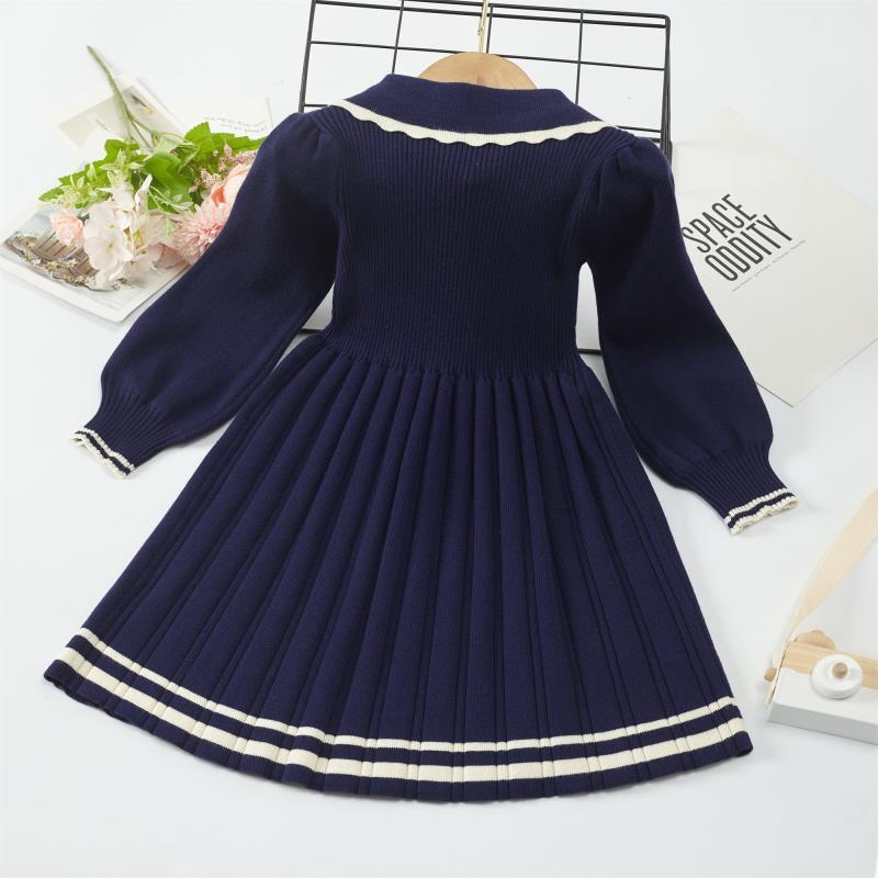 Платье для девочек, новое осенне-зимнее утолщенное теплое платье-свитер, платье принцессы для девочек, вязаное платье в студенческом стиле с бантом, платье для девочек