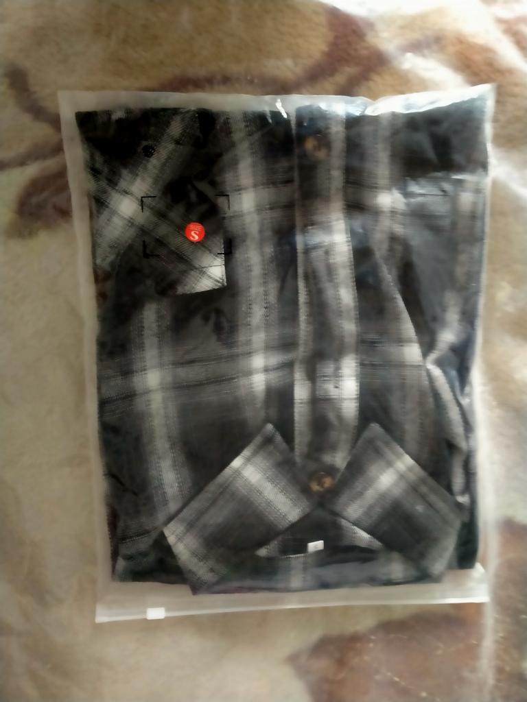 Получила на почте..Спасибо джуму и продавцу.Рубашка на фото конечно выглядит лучше.Матерьял тоненький,по размеру подошла но размер я ношу M.