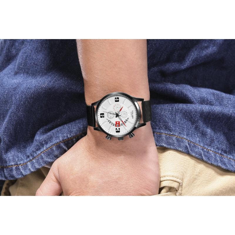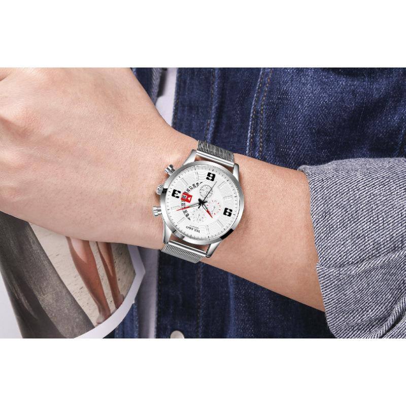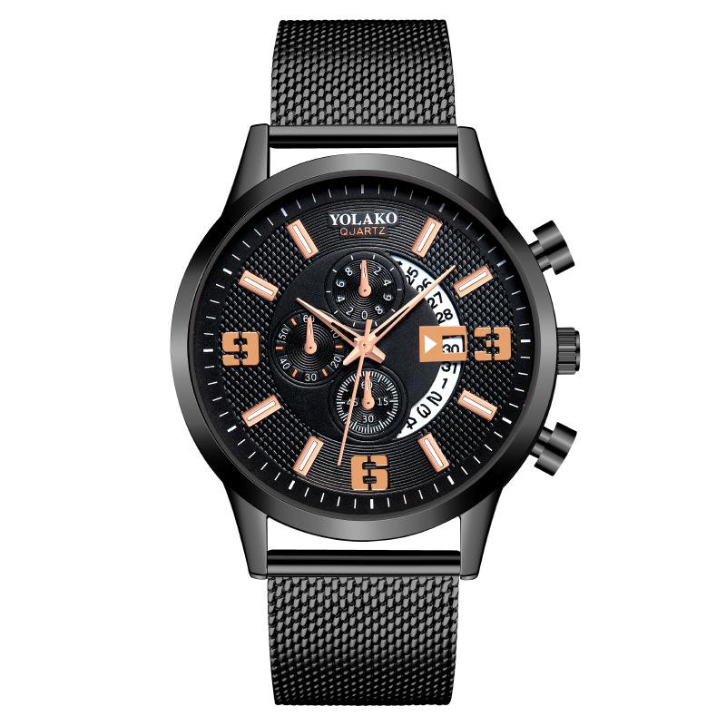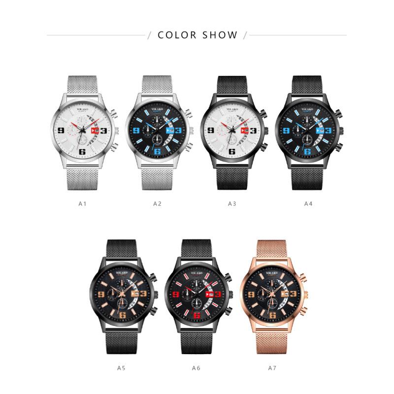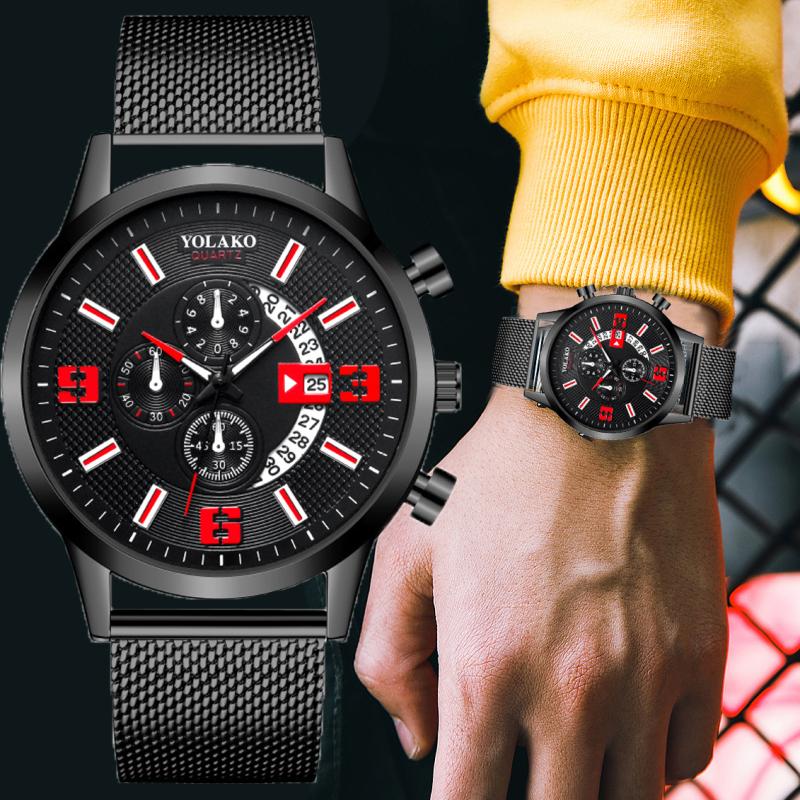 Мужские кварцевые наручные часы с сетчатым ремешком, модный календарь, мужские деловые часы, модные подарки, часы