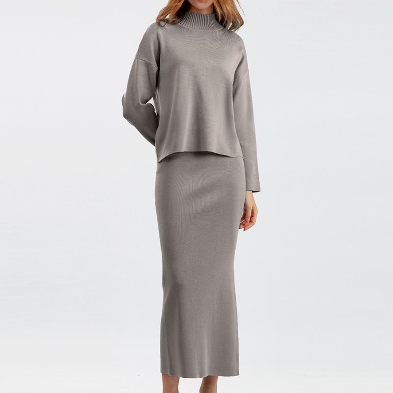 Осенний женский вязаный юбковый костюм с разрезом, новая мода, повседневный свободный свитер, длинные юбки, комплект из 2 предметов, женские наряды, элегантная зимняя одежда
