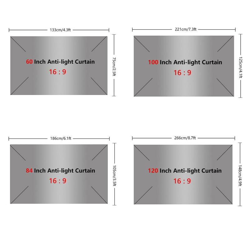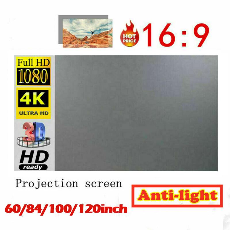 60/84/100/120 дюймов HD 16:9 ОТЛИЧНЫЙ киноэкран из натуральной полиэфировой ткани. В отличие от других обычных киноэкранов, это модернизированная версия, серая занавеска, эффективно улучшающая контраст проекции. Избегайте проникновения света для четкого изображения экрана.