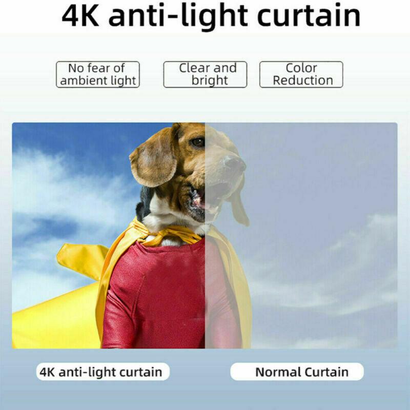«Морщины, пожалуйста, уходи!Вам не нужно беспокоиться о морщинах и складках, вызванных складыванием экрана. киноэкран проектора ярче, чем большинство других проекционных экранов, гладкая поверхность улучшает результаты изображения. Мы надеемся, что наш высококонтрастный экран и анти-складочный материал сделают все проще. Если на нем есть пыль, очистите его мокрой тканью, рекомме