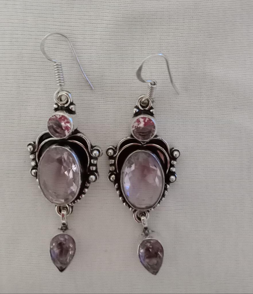 Посылка в Санкт-Петербург шла 55 дней. Серьги очень красивые. Написано что розовый кунцит натуральный. Хочется в это верить. Пробу рассмотреть не удалось даже в лупу, стоит какой-то штамп, но то, что это серебро, сомнения не вызывает. Большое спасибо мастеру, изготовившему эти серьги и Джуму.