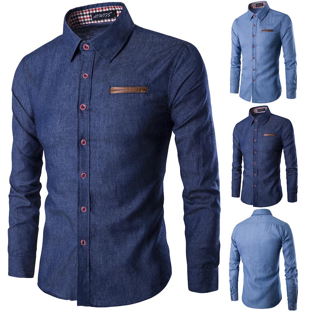 Новые мужские джинсовые рубашки с длинным рукавом, мужская классическая рубашка, модная приталенная стильная темно-синяя джинсовая мужская рубашка, рубашка с длинными рукавами для мужчин — купить товар онлайн с бесплатной доставкой по всему миру!