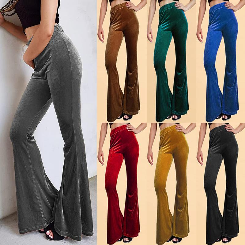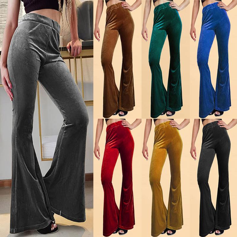 Винтажные бархатные длинные брюки-клеш, женские корейские уличные сексуальные брюки с высокой талией, женские повседневные велюровые красные, черные брюки-клеш