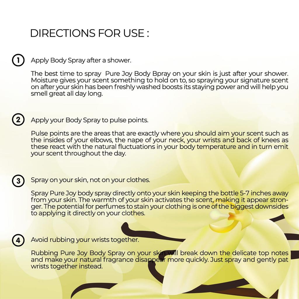 Спрей для тела Pure Joy Vanilla унисекс, сильный, стойкий, с цветочным ароматом и эфирными маслами, идеально подходит для ежедневного использования, 100 мл