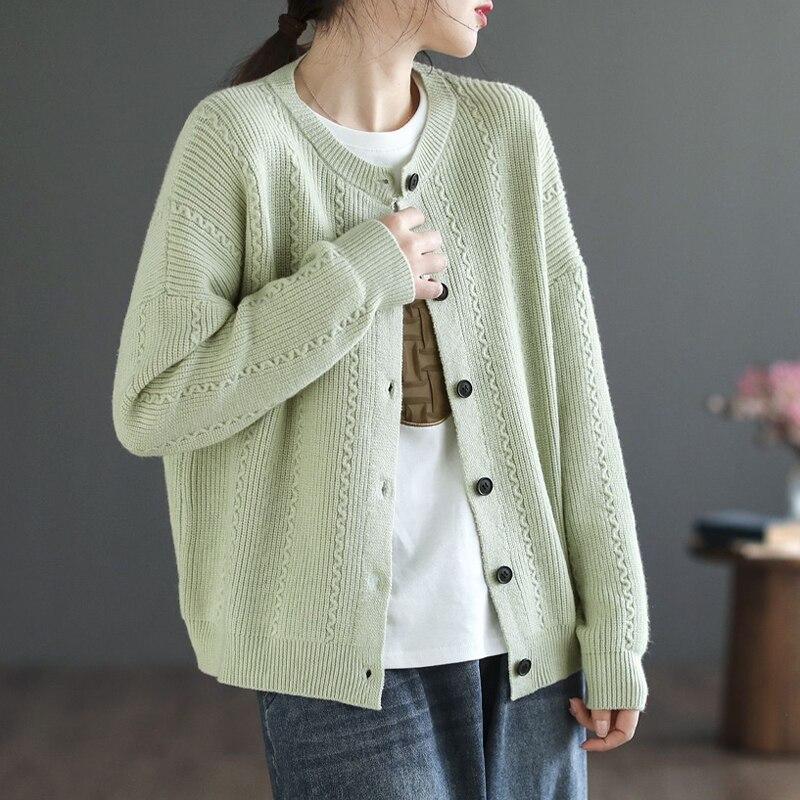 2023 Вязаный кардиган Женский повседневный свитер Осень-зима Свободный джемпер с длинным рукавом Топ Модный элегантный трикотаж Простые свитера 29232 — купить товар онлайн с бесплатной доставкой по всему миру!