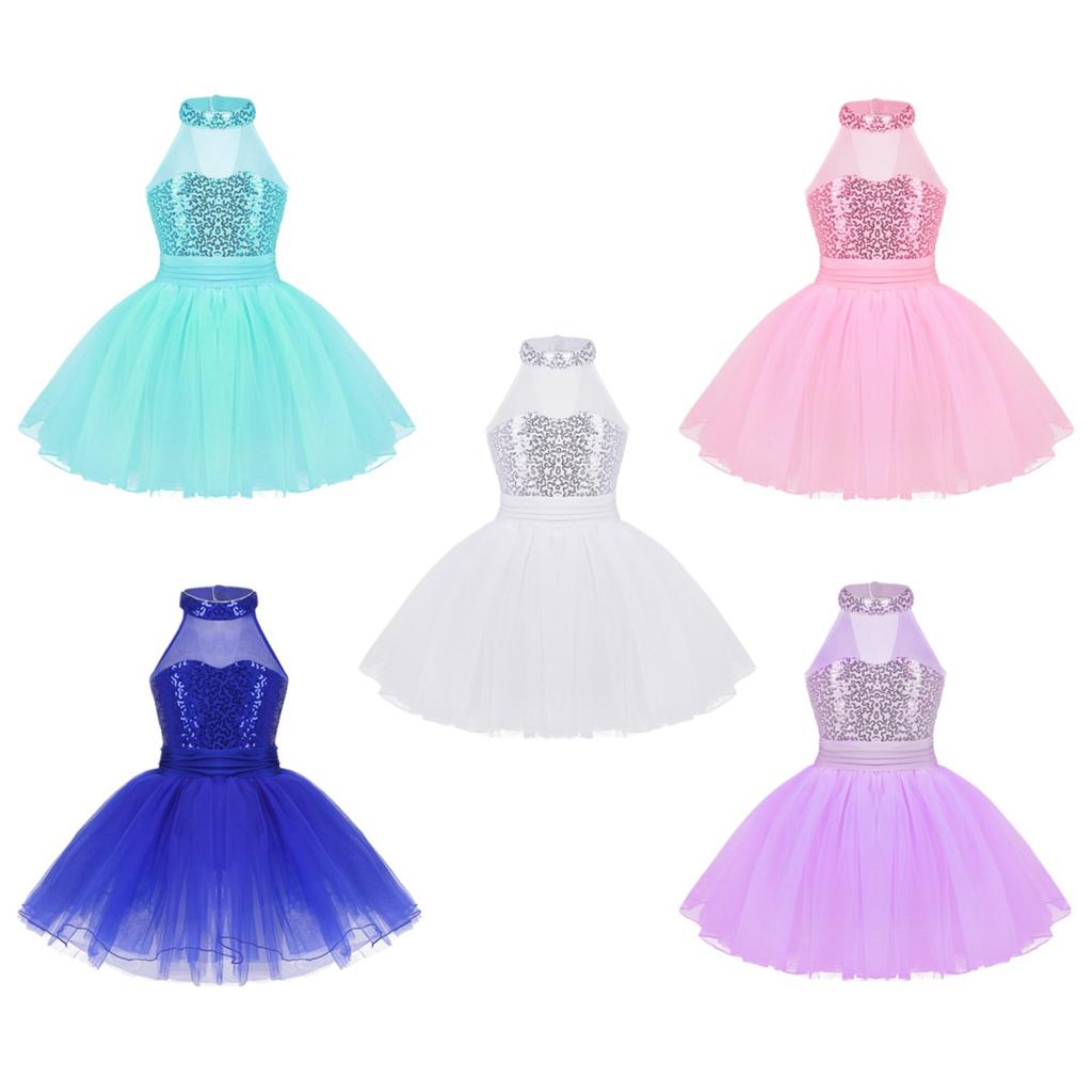 Детский костюм с блестками, балетное платье-пачка для девочек, танцевальное трико, сценическое гимнастическое платье для упражнений