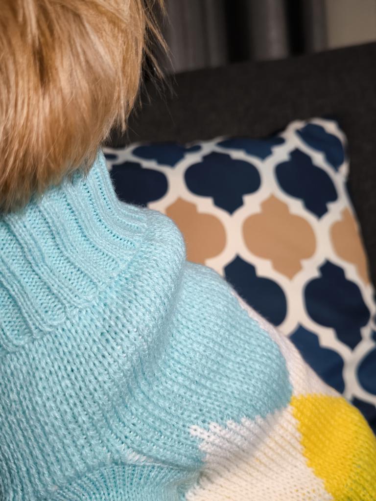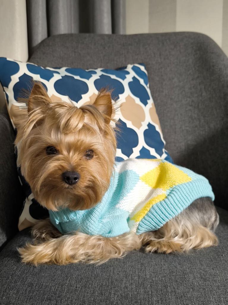 Свитерок для домашнего любимца 🐾 Качество хорошее. Но это не шерсть, скорее всего акрил. Мягкий и приятный к телу, не электризуется. Никакого постороннего запаха. На Лимончике XL Сел отлично. Вес у ребенка 3 кг, обхват грудки 34 см. Точные замеры изделия: Длина по спинке 33,5 см Длина по пузику 19,5 см Обхват груди 40 см Для задних лапок предусмотрены лямки. Лимончик рекомендует 🤗