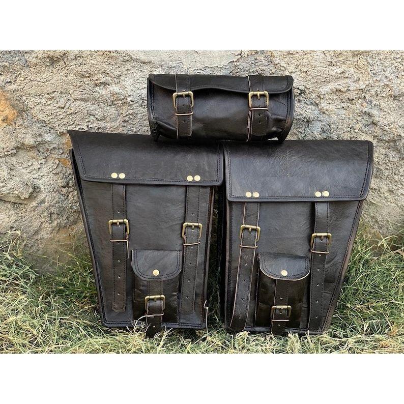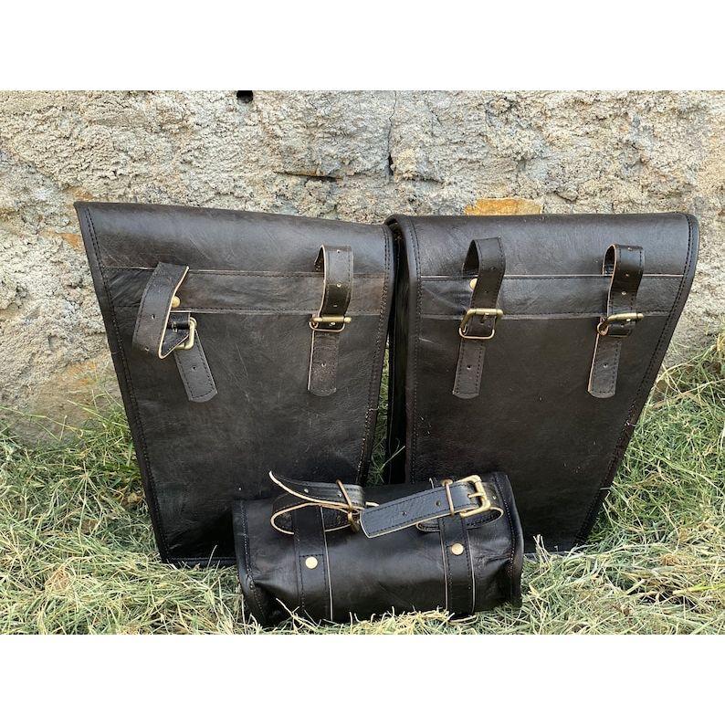 Кожаные седельные сумки Мотоциклетная сумка Черные три сумки Корзины Седельные сумки для спортивных комментаторов Набор из трех сумок