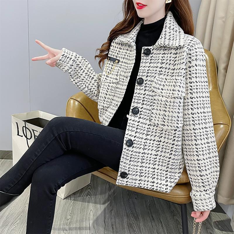 Кардиган короткий шерстяное пальто в клетку «Тысяча птиц» женское, весна-осень 2023, свободный крой, маленький ароматный трикотаж для женщин