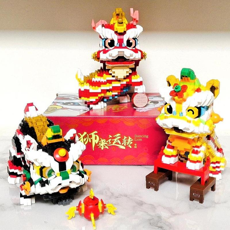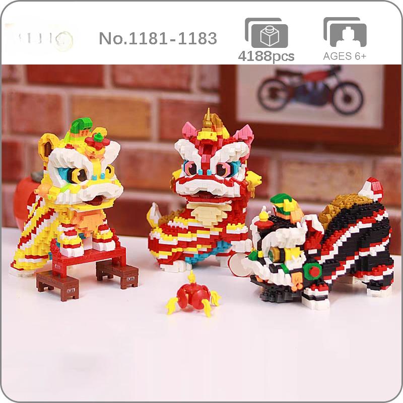 Весенний Фестиваль Лев Танец Шоу Мяч Стул Животное Домашнее Животное Кукла Модель Мини Алмазные Блоки Кирпичи Строительная Игрушка Для Детей Без Коробки