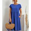 Модное женское свободное хлопковое льняное летнее платье с коротким рукавом и круглым вырезом — купить товар онлайн с бесплатной доставкой по всему миру!