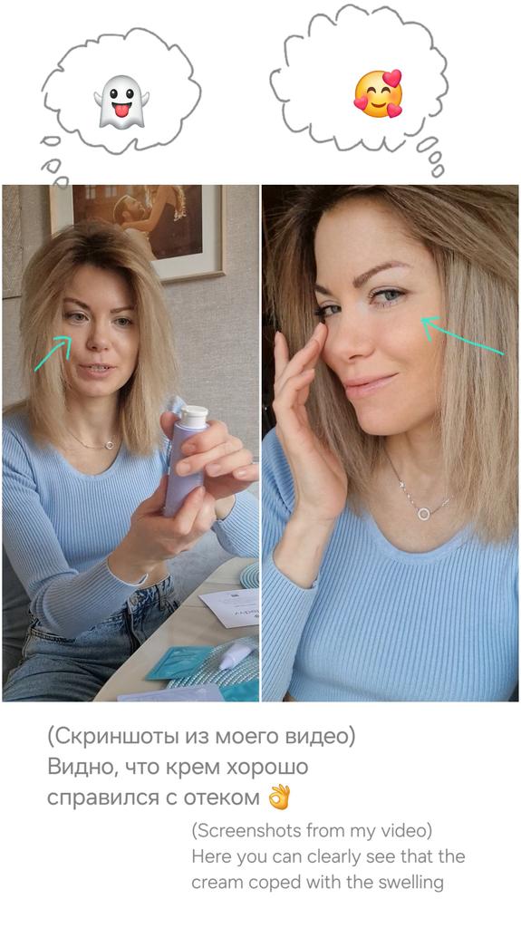 Как долго я тебя искала... 🩵🩷🤍 Очень хороший крем для нежной кожи вокруг глаз 👁👁 Моя вечная проблема - утренние отеки (припухлость под глазами). Крем от VVBetter отлично справляется со своими задачами 👌 - питает, увлажняет кожу, убирает отечность. Этот бренд мне порекомендовала подруга, я уже пробовала питательную сыворотку для лица, она суперская! Я очень люблю корейскую косметику, она действительно работает. Крем для глаз имеет очень нежную текстуру и легкий приятный аромат. Крем быстро впитывается и работает практически моментально, отечность уходит минут за 5 🔥💪 Меня привлекла красивая упаковка, а затем конечно заинтересовал состав. В данном креме содержится бакучиол, а так же 8 пептитодов. 🩵 Бакучиол (Bakuchiol) является ингредиентом, обнаруженным в растении бабчи. Бакучиол эффективен по своим антивозрастным эффектам, и некоторые люди называют его «естественной альтернативой ретинолу». Бакучиол улучшает тон кожи, сужает поры, оказывает смягчающий и лифтинг-эффект, уменьшает количество мелких морщин и делает кожу более плотной – в общем, радует тем же набором целительных свойств, что и производные витамина А. Про полезные свойства 8-ми пептидов можно прочитать в интернете. От себя лично скажу, что я вижу результат ☀️👍