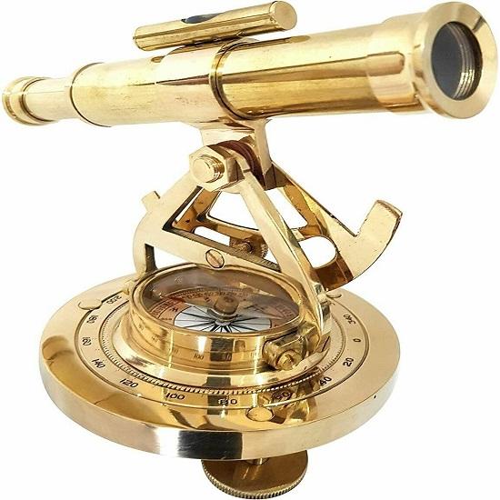 У нас можно приобрести телескопический инструмент для наблюдения за морским латунным компасом.. Теодолит изготовлен из высококачественной латуни и имеет латунную отделку.. Прекрасное дополнение к любой морской коллекции.. Это также полезно для демонстрации функций теодолита.. Геодезисты могут использовать высококачественное воспроизведение для выравнивания и измерения вертикальных и горизонтальных углов.. характеристики продукта: В качестве материалов используются латунь и стекло.. Габаритные размеры: 12,7 см. Отделка – полированная латунь.. Посмотрите на фотографии, чтобы увидеть фактическое изображение продукта. Вся работа выполняется вручную.