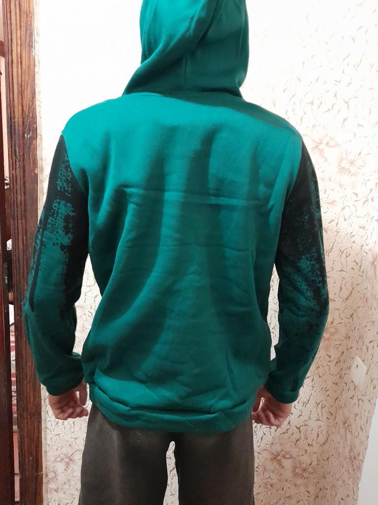 Толстовка выгдядит не плохо, синтетика, подошла на руский 48 ,но как обычно с китайскими вещами слегка короткая,и слегка широкая.после стирки не полиняла и не села.мужу понравилась больше чем мне, но и носить ему.доставка быстрая.