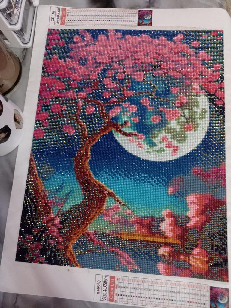Обожаю алмазные мозаики, эту выиграла за 1 балл, была рада, как ребенок)) Упаковка пришла очень измятая, но на полотне это не сказалось. Внутри скрученного в рулон полотна лежал поролоновый валик, благодаря ему нет заломов. Разворачиваться положила под стекло. Полотно разделено на 4 части и заклеены бумагой. Одно но: когда я попыталась отклеить бумагу, она начала отходить вместе с клеевым слоем, на котором должны держаться мозаинки. В комплекте есть ручка с несколькими насадками (на 1 алмазик и 2 насадки на несколько алмазов сразу). Когда соберу (если не забуду), дополню отзыв. Дополняю. Собрала мозаику, красота получилась, вся блестит и переливается. Схема составлена очень качественно, отлично продуманные тона и полутона. Рекомендую и благодарю продавца и Джум за выигрыш.