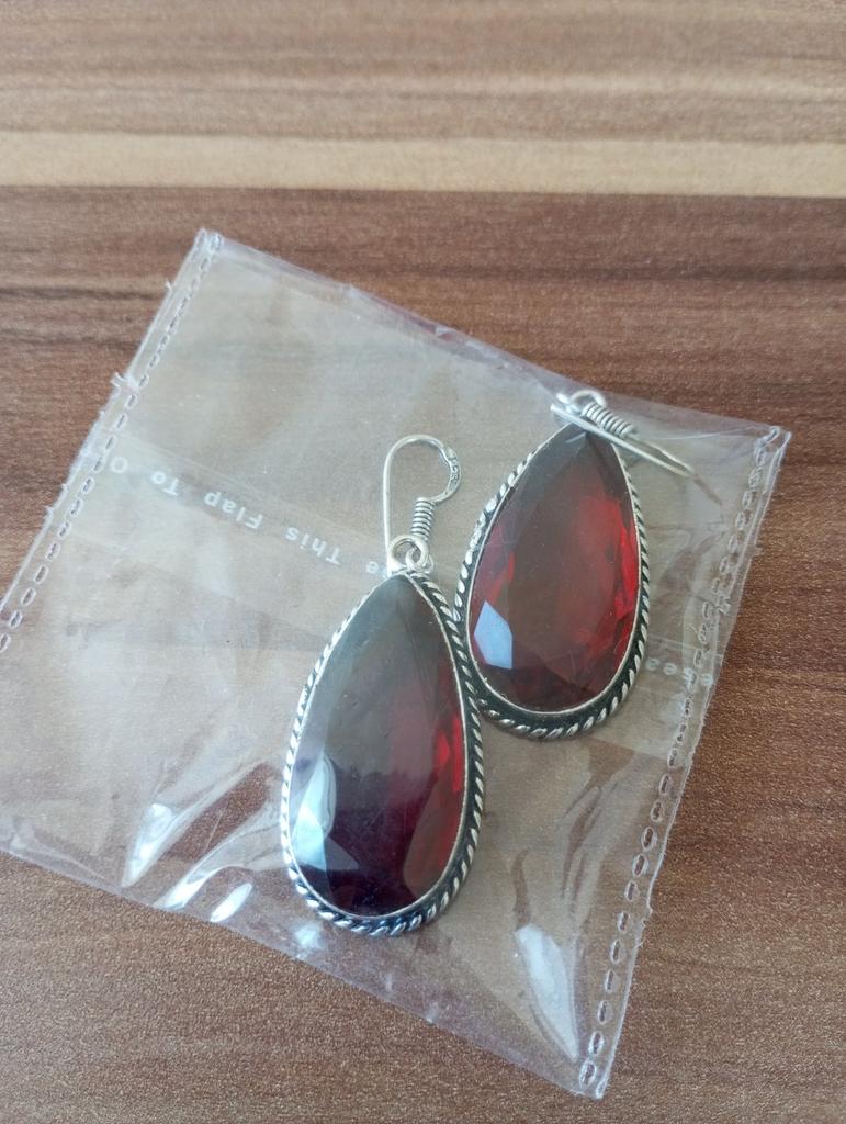 Серебряные серьги из Индии с гранатом. Я не разбираюсь , поэтому поверю продавцу. Металл очень тонкий, легко гнутся, по крайней мере душки были согнуты немного и поправила легко. Проба на обеих серёжках. Продавец отправил 4 заказа в одной пластиковой коробочке. Пришли без заглушек, но у меня есть свои. В общем, серьги красивые, но ,наверно, я их носить не буду из-за размера. На видео всё показала. Спасибо🙏💕🙏💕🙏💕