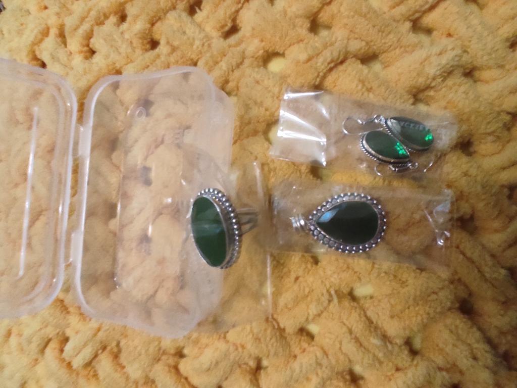 Заказ получила вовремя, хотя из Индии. Осталась очень довольна. Всё целое-и кольцо, и серьги, и кулон. Камни очень красивые. Рекомендую продавца и ДЖУМ.