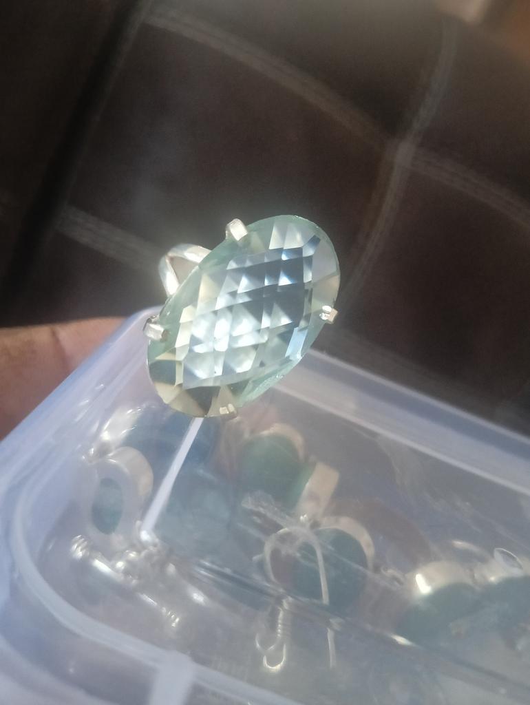 Кольцо на фото выглядит крупнее,чем оно есть на самом деле, и цвет кристалла не такой,как на фото продавца. У продавца кристалл нежно-бирюзового цвета,а на самом деле он обыкновенный голубой, и похож на стекло.