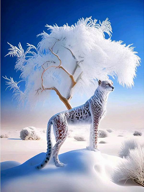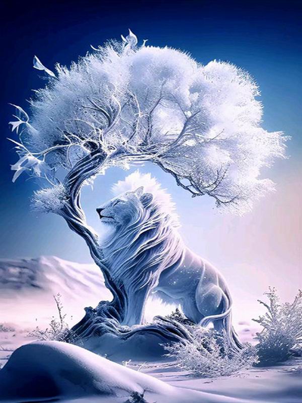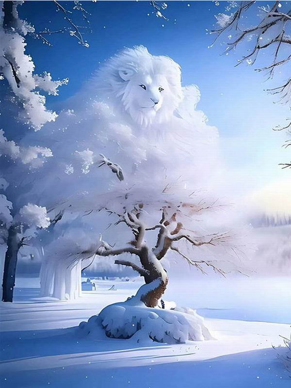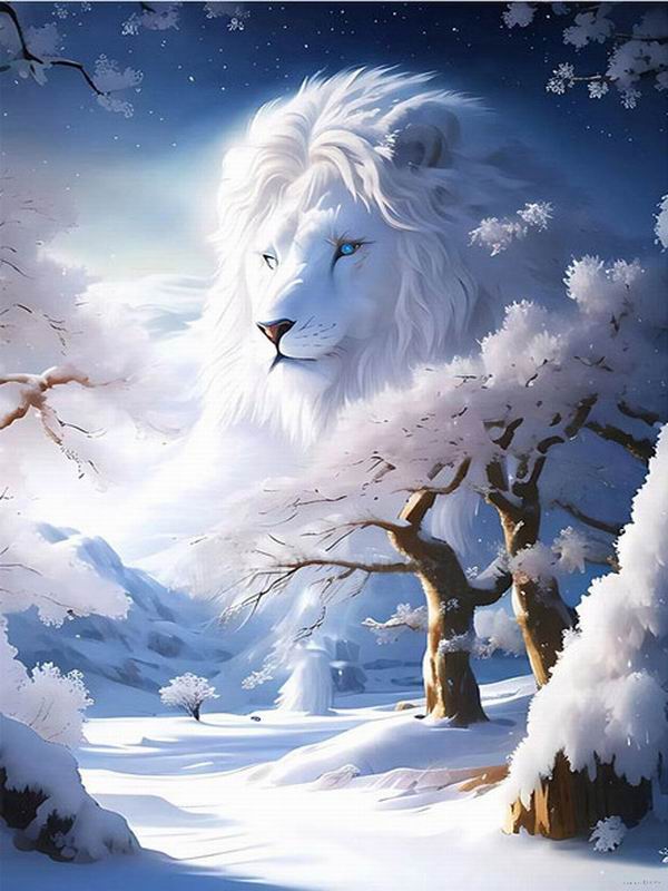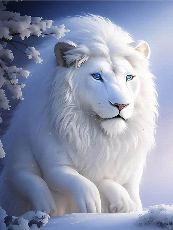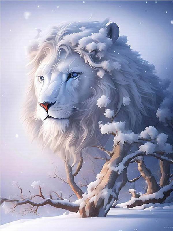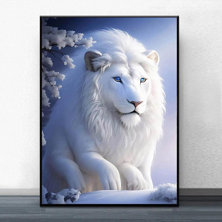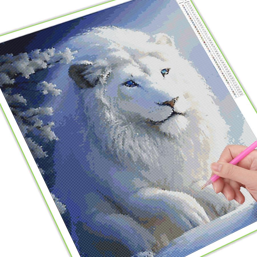 Алмазная живопись Новые поступления Белоснежный лев Diy Полный квадратный круглый дрель Стразы Вышивка Зимний пейзаж Животные Мозаика Наборы для вышивки крестом