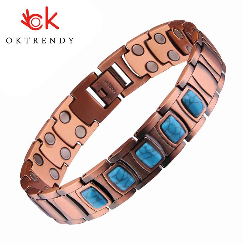 Браслет для магнитотерапии для здоровья, женский бирюзовый природный камень, медный браслет