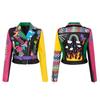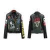 Весенние короткие кожаные куртки с рисунком черепа в стиле граффити для женщин в стиле панк, тонкая уличная одежда с заклепками, мотоциклетные куртки, пальто