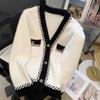 Дизайн кардигана с v-образным вырезом, вязаный кардиган со знаменитостями, контрастным контрастом, осень/зима 2023, повседневная женская шуба из искусственной норки