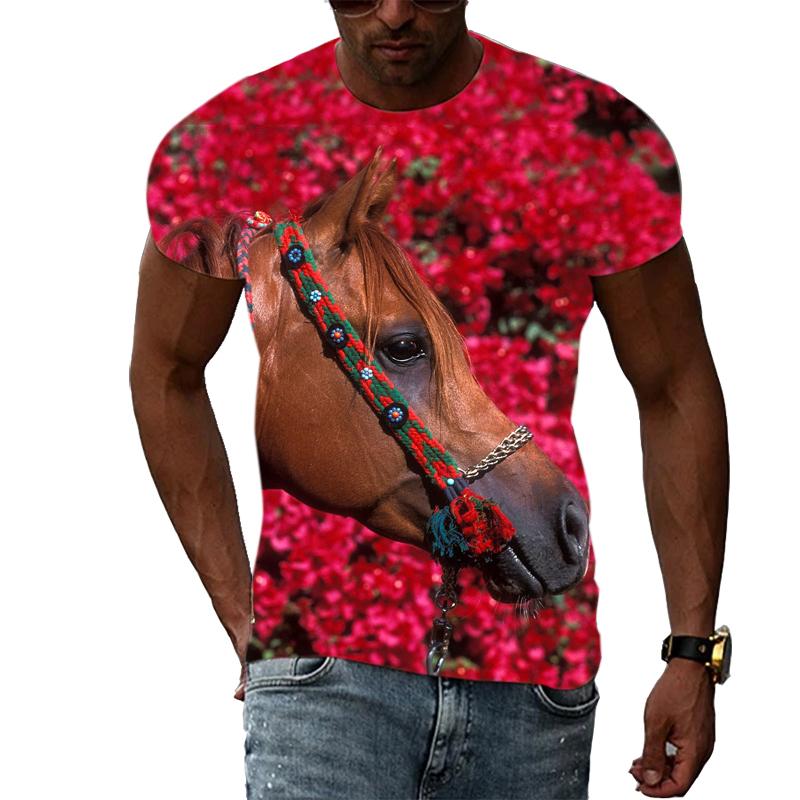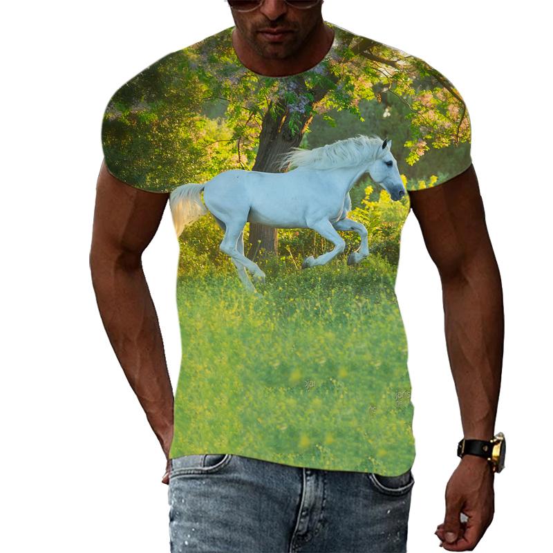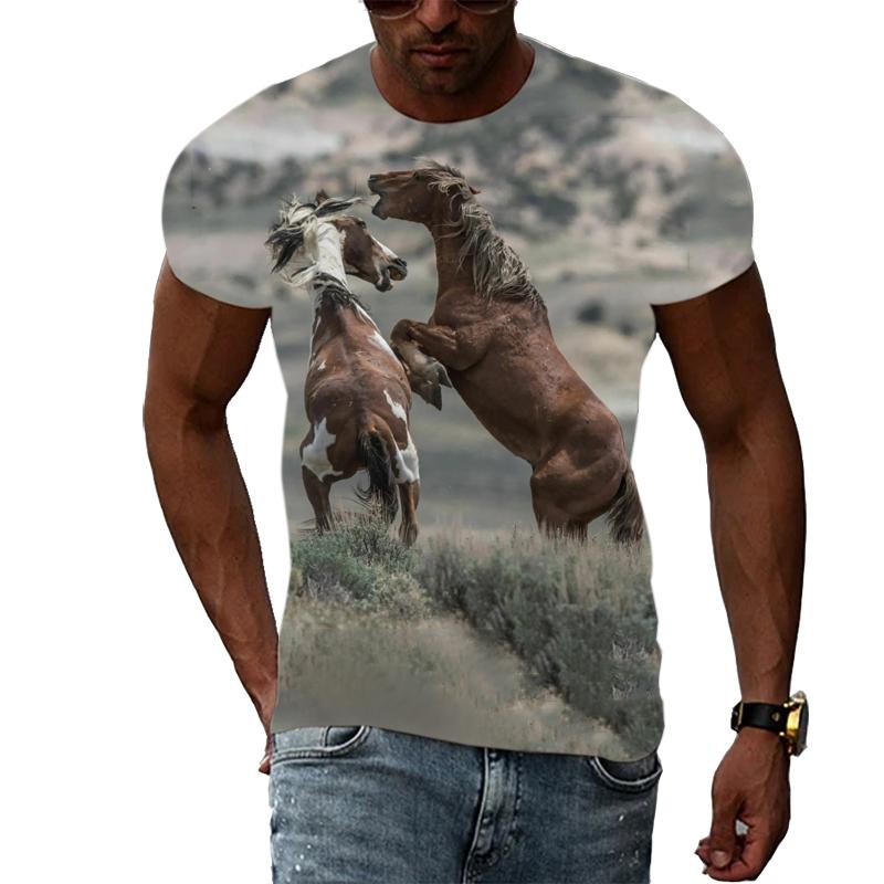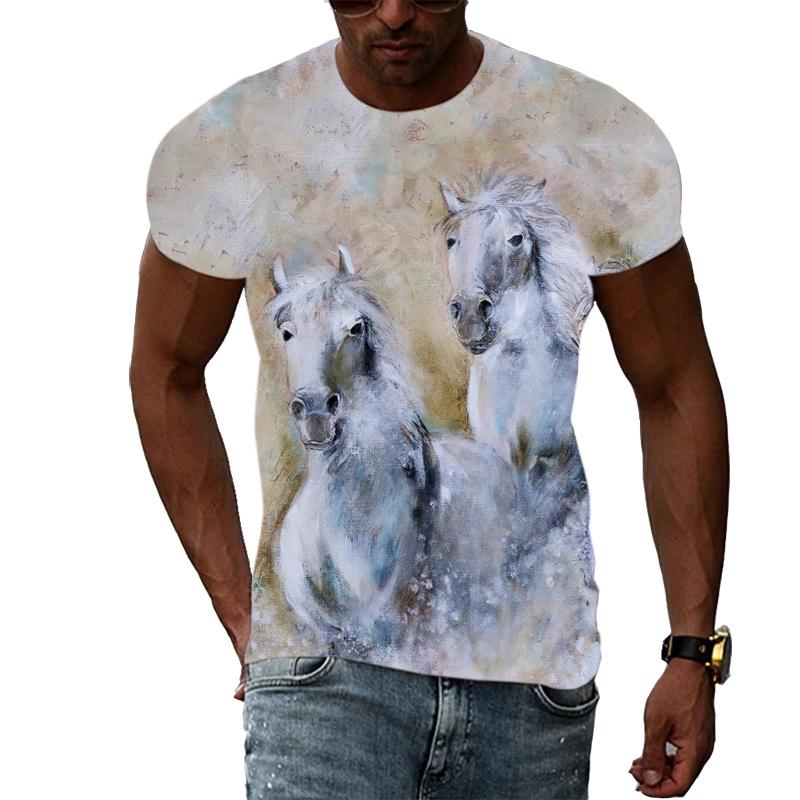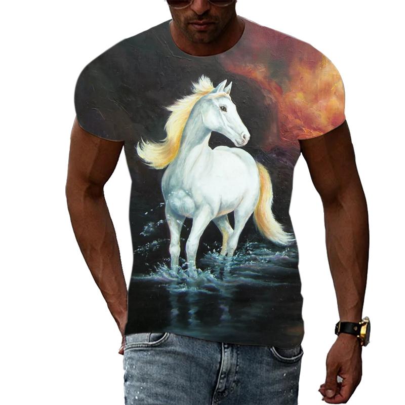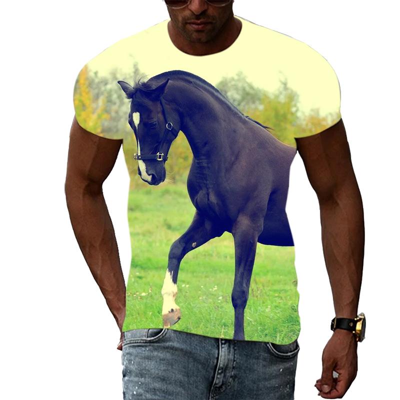 Летние мужские крутые стильные футболки с рисунком лошади, модная футболка с принтом животных в стиле хип-хоп, повседневная футболка в стиле Харадзюку