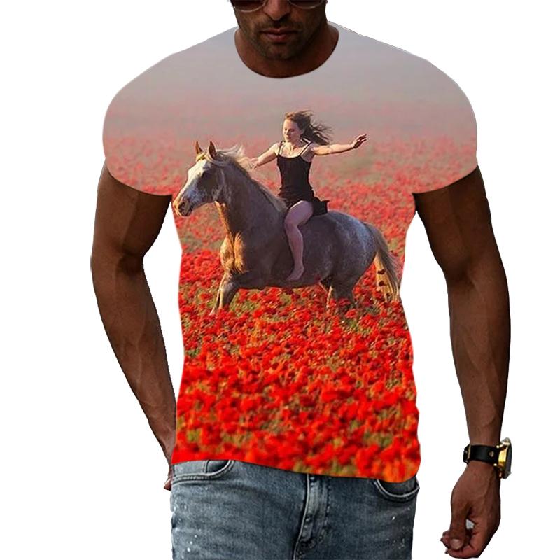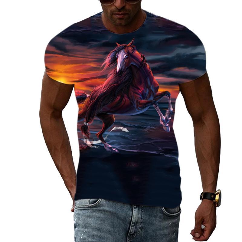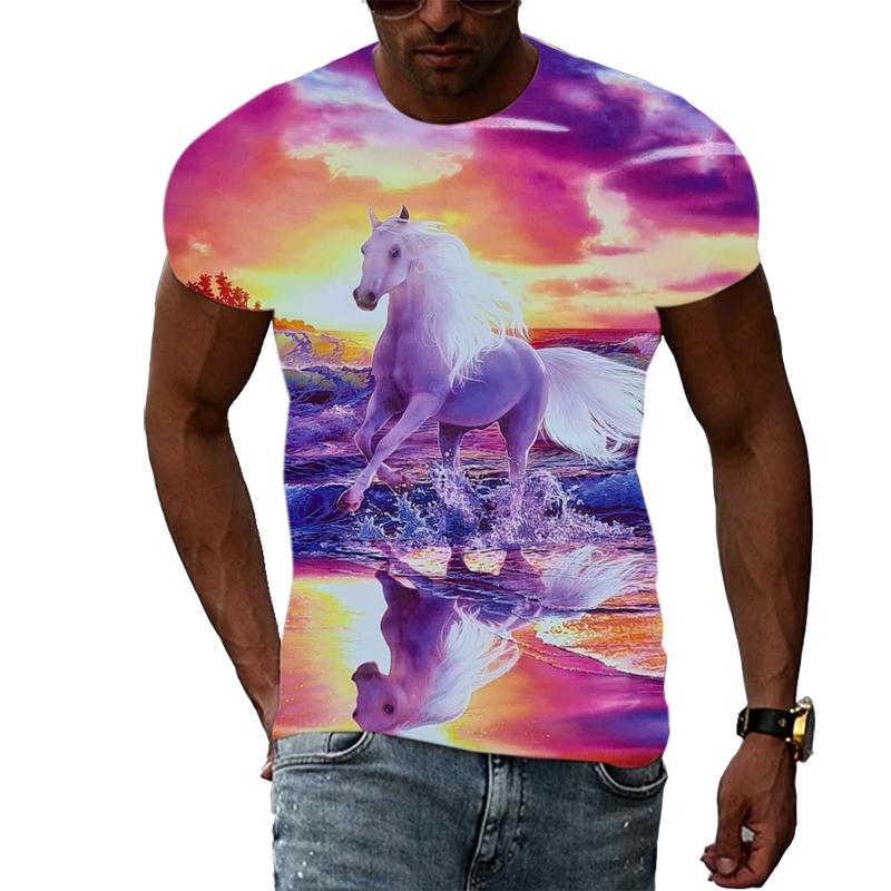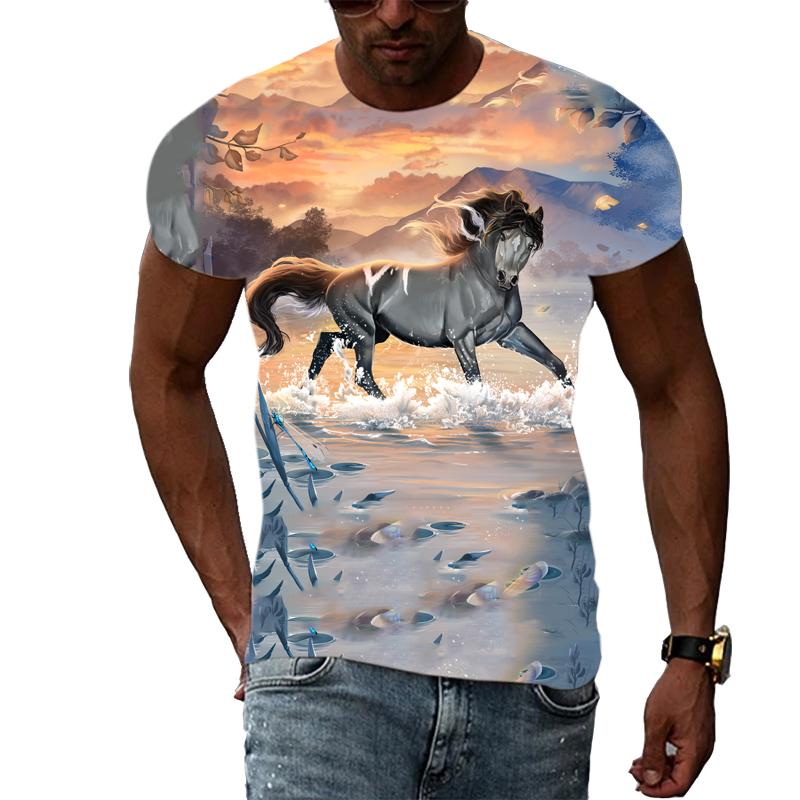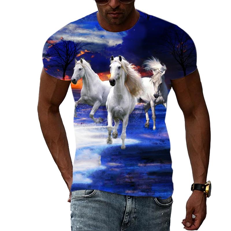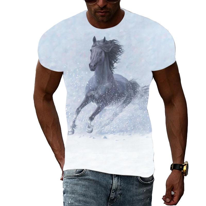 Летние мужские крутые стильные футболки с рисунком лошади, модная футболка с принтом животных в стиле хип-хоп, повседневная футболка в стиле Харадзюку