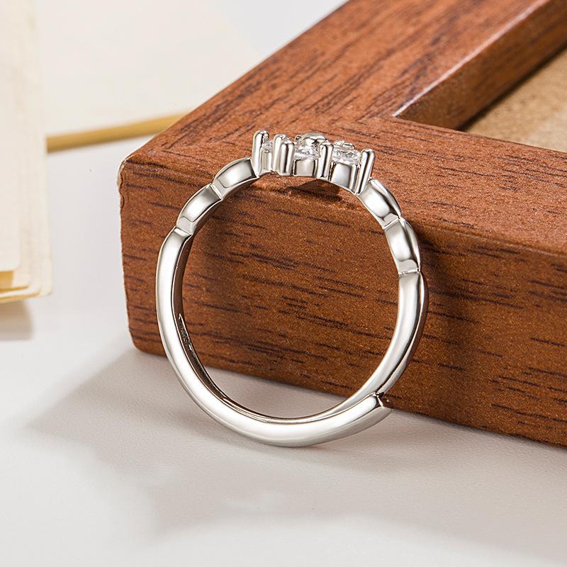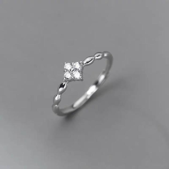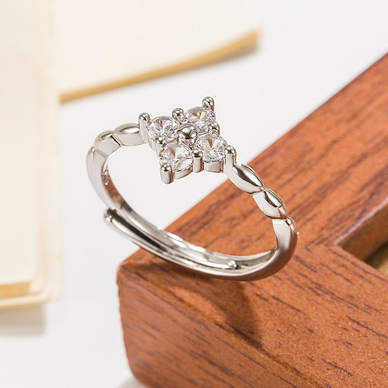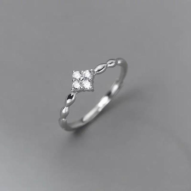 ANENJERY Серебряное кольцо с цирконием и четырьмя лепестками цветов для женщин, простые красивые ювелирные изделия принцессы, аксессуары, подарок