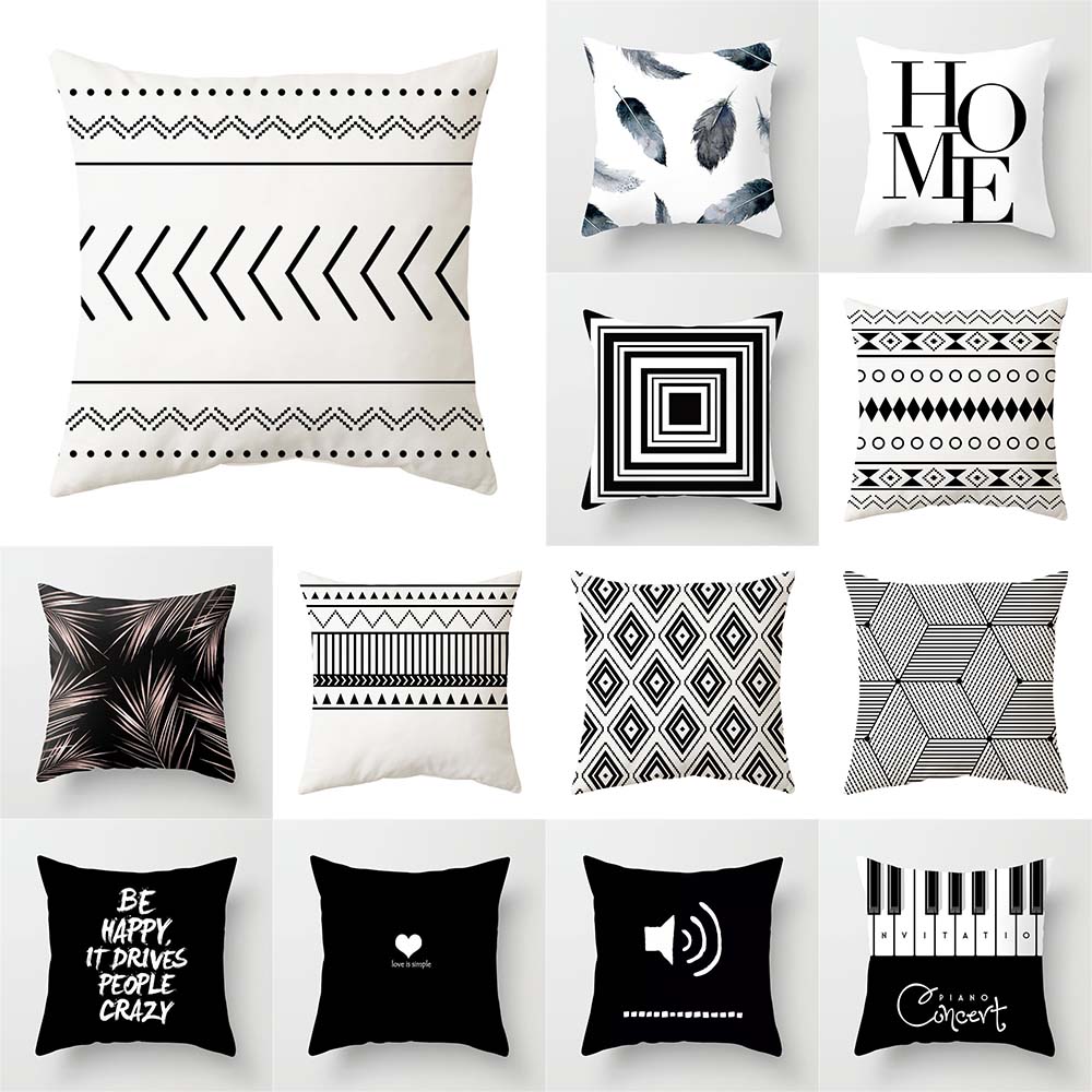 Черно-белый простой геометрический узор с принтом, чехол для подушки, домашняя гостиная, украшение для дивана, подушка, наволочка