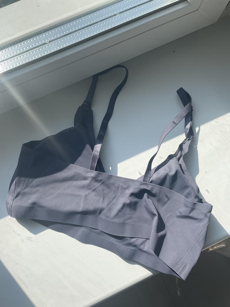 Бесшовный топ с чашками) Очень красивый цвет. Брала для подруги, ей понравился. Можно даже носить как обычный топ летом ) есть чашки, они так же легко вытаскиваются. Размер L подошел на обхват груди 92. Лямки регулируются. В Москву доставка заняла месяц.