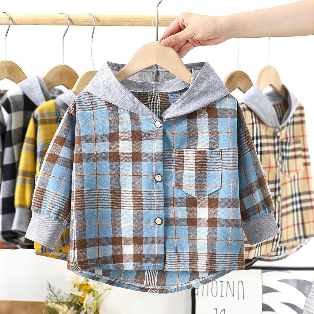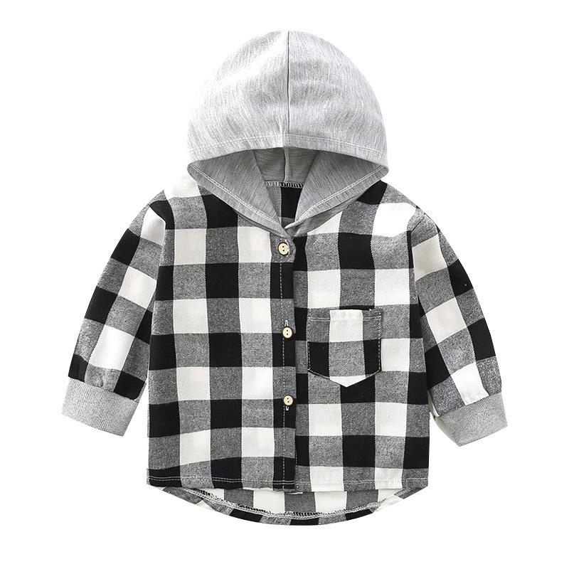 Детская рубашка в клетку с капюшоном, блузка с длинными рукавами для маленьких детей, повседневная верхняя одежда для мальчиков и девочек