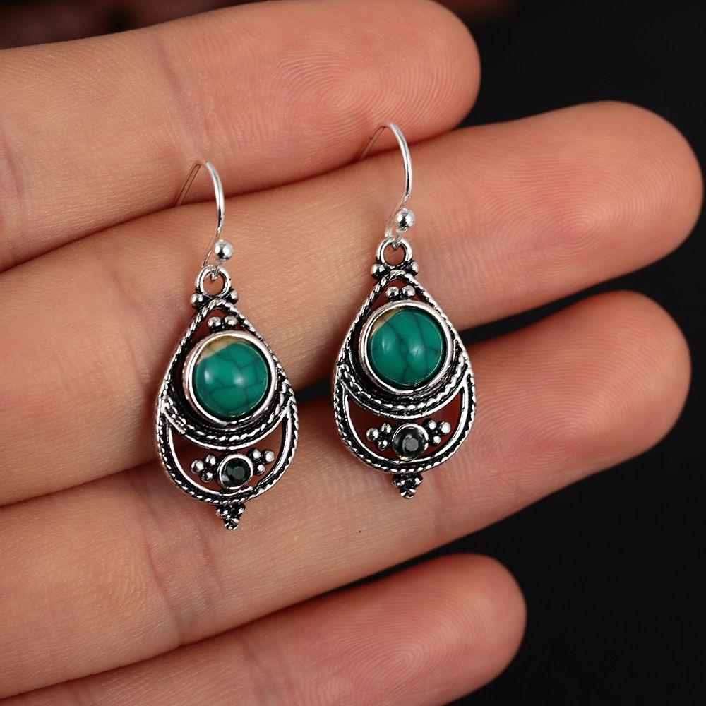 Винтажные модные ювелирные изделия, висячие серьги из натурального драгоценного камня с бирюзой, серебро 925 пробы