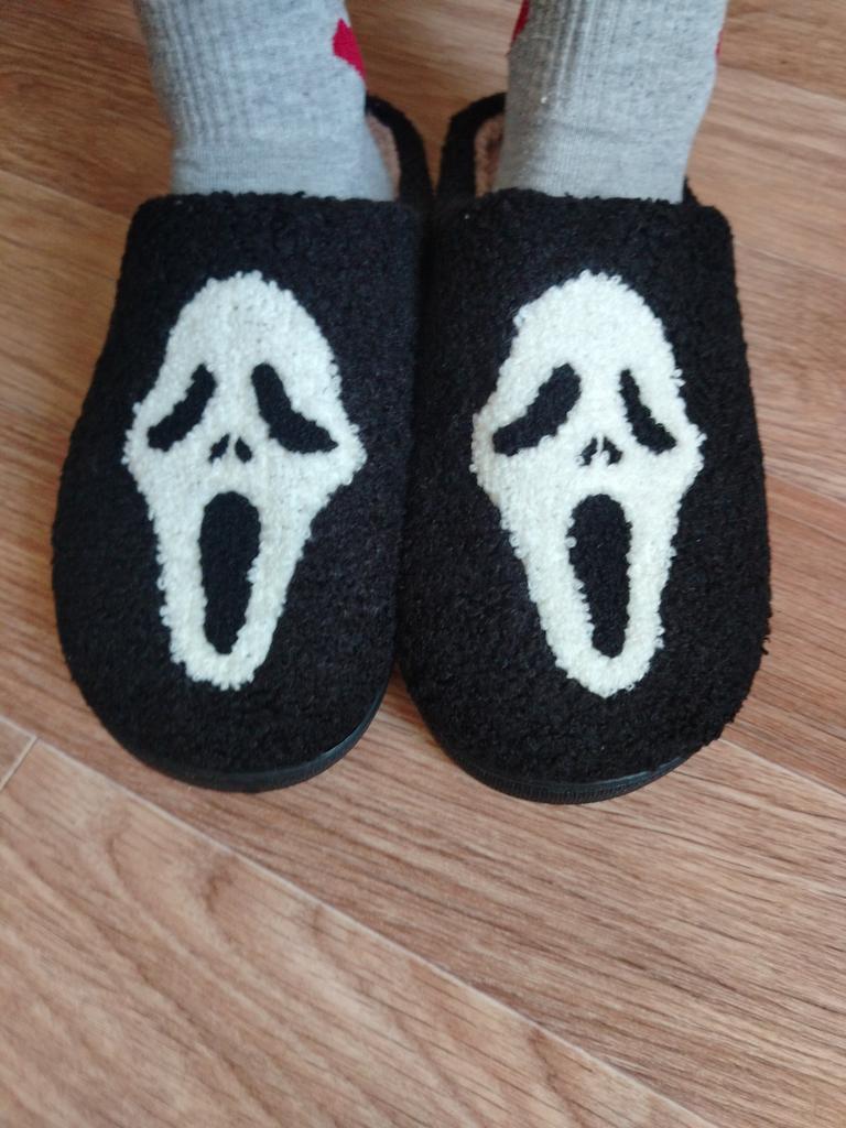 Новые теплые зимние хлопковые тапочки с рисунком черепа на Хэллоуин для мужчин и женщин, домашние домашние хлопковые тапочки для пар