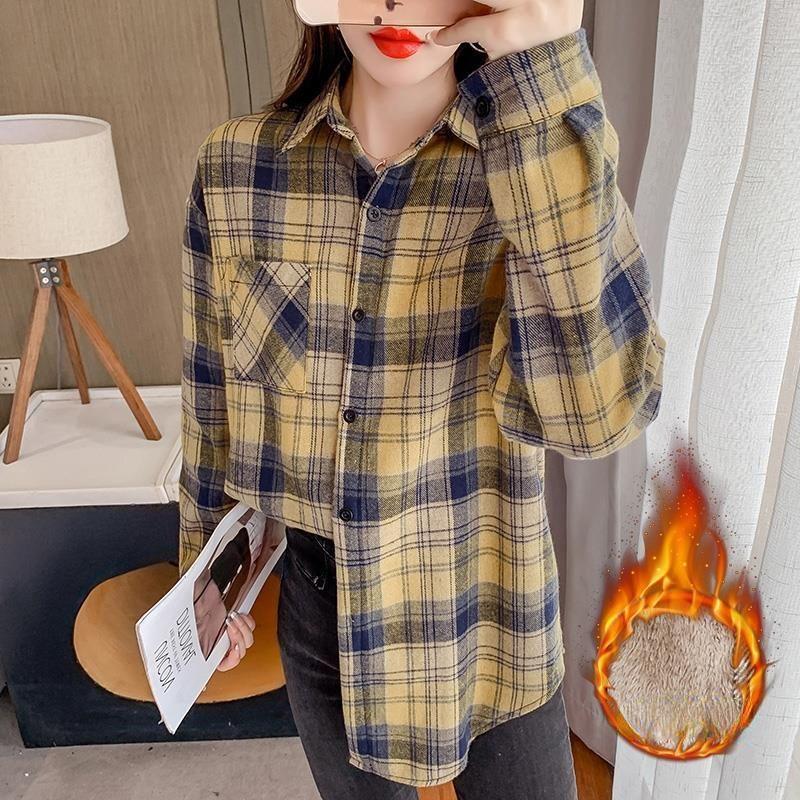 Женские толстые плюшевые теплые клетчатые рубашки, винтажная свободная блузка с карманами, осень-зима, женские повседневные корейские топы с длинными рукавами — купить товар онлайн с бесплатной доставкой по всему миру!