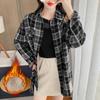 Женские толстые плюшевые теплые клетчатые рубашки, винтажная свободная блузка с карманами, осень-зима, женские повседневные корейские топы с длинными рукавами