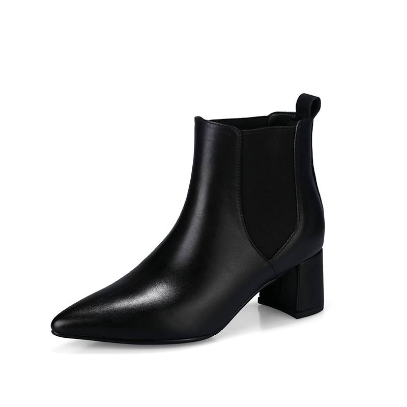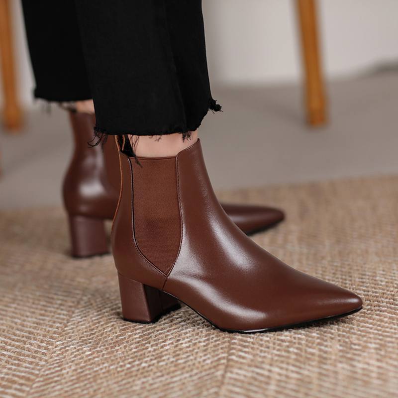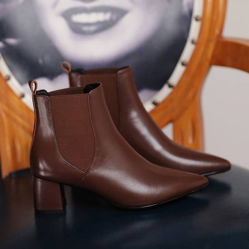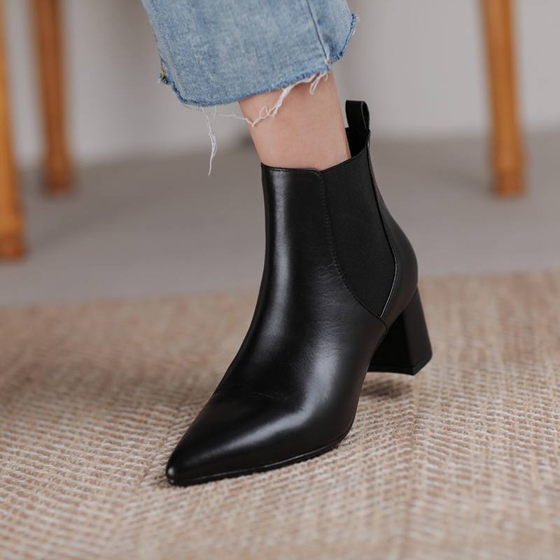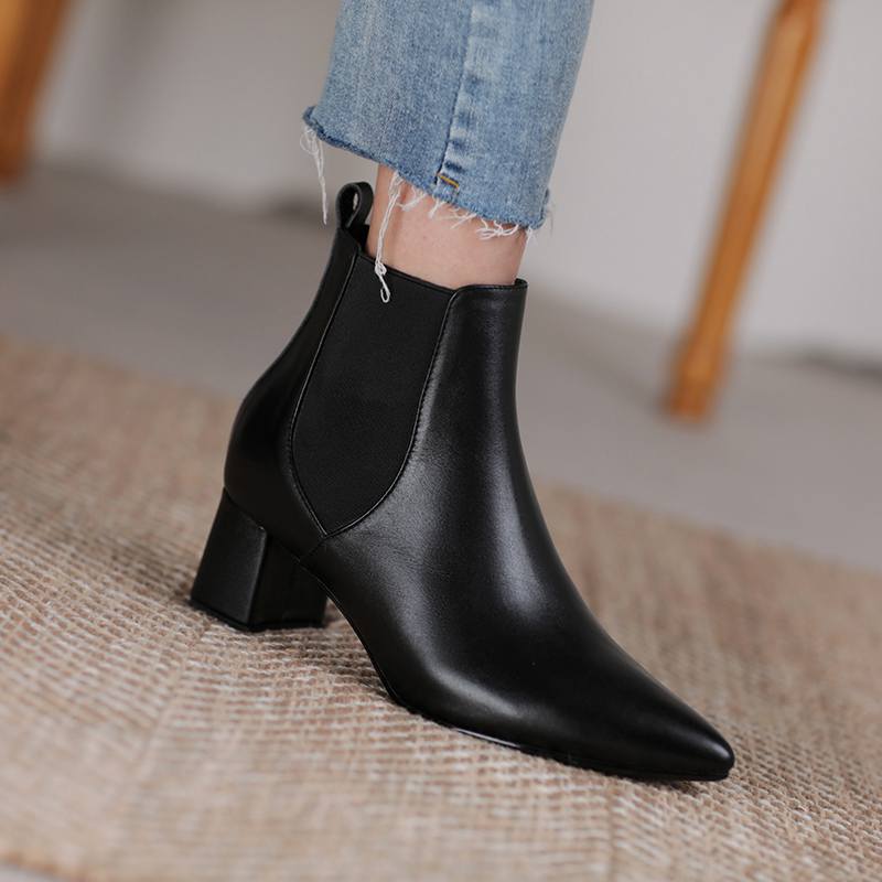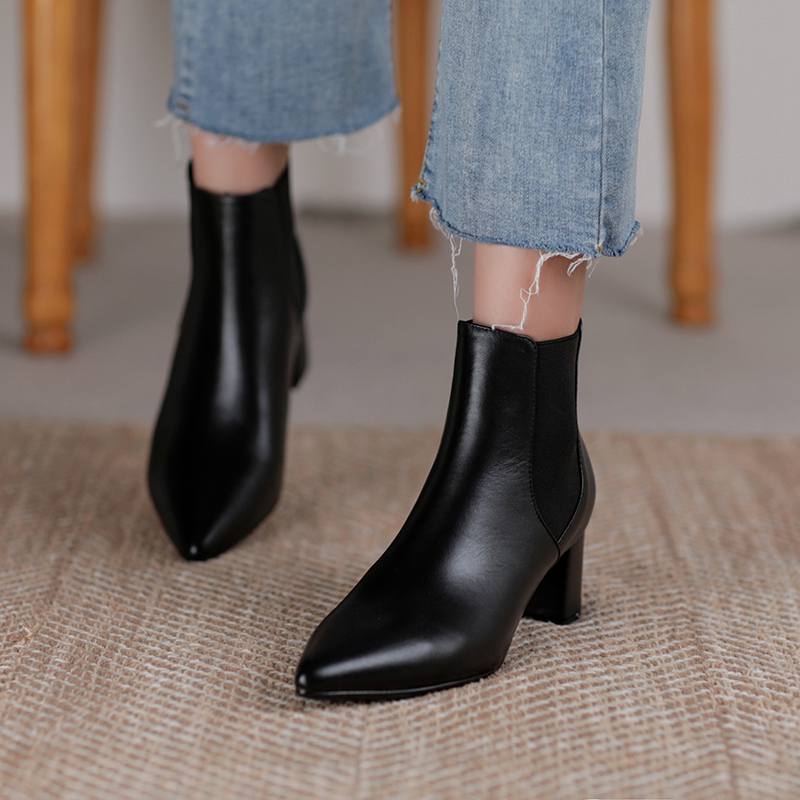 Krazing Pot Зимние ботинки челси из коровьей кожи с острым носком на толстом среднем каблуке, женские ботильоны без шнуровки, большие размеры, ботильоны в лаконичном стиле в стиле ретро