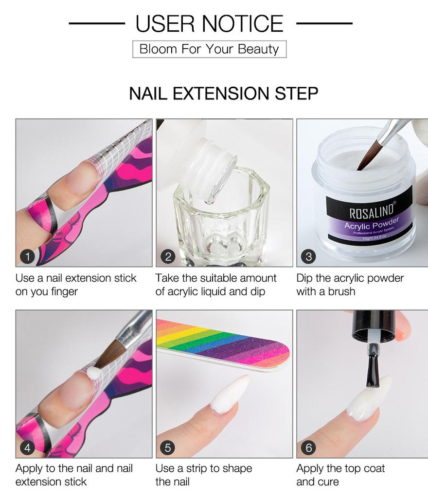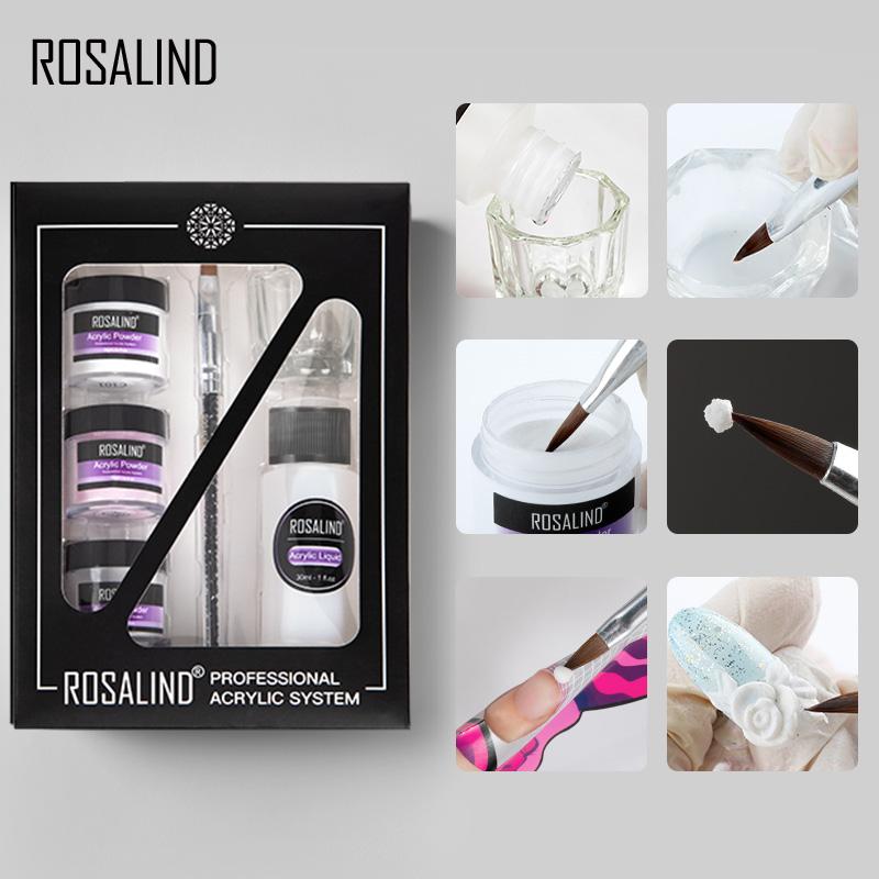 ROSALIND акриловая пудра с кристаллами для дизайна ногтей, прозрачная акриловая пудра для ногтей, маникюр, 10 г, розовая, белая, прозрачная
