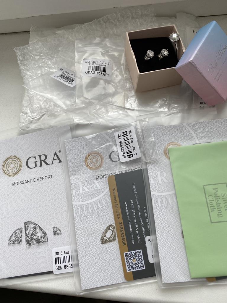 мои муассаниты, с паспортами, в красивой коробке , блестящий комплект , 2 каратника, очень рада 😃, спасибо 😉 рекомендую!!!!😋😋😋🤙🤙🤙🌷🌷🌷отдельное спасибо за совмещенную посылку🙌☺️🌷🌷🌷